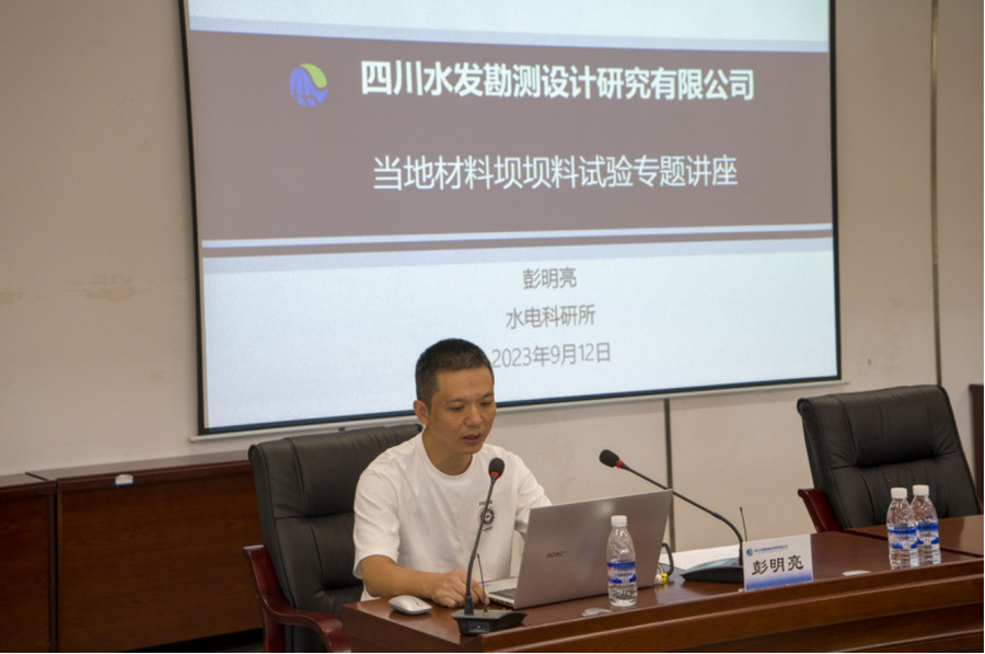 在講授中,陸恩施作“從水布埡、天生橋、紫坪鋪等工程看面板壩填筑標準和經(jīng)驗分享”,彭明亮作“當?shù)夭牧蠅螇瘟显囼灱夹g(shù)專題交流(粗粒土試驗、細粒土試驗、泥質(zhì)巖防滲料)”。兩位主講人將豐富的實踐經(jīng)驗同理論相結(jié)合,深入淺出的將當?shù)夭牧蠅翁钪霸囼灱夹g(shù)做了交流分享,干貨滿滿的課程令在場職工獲益匪淺。