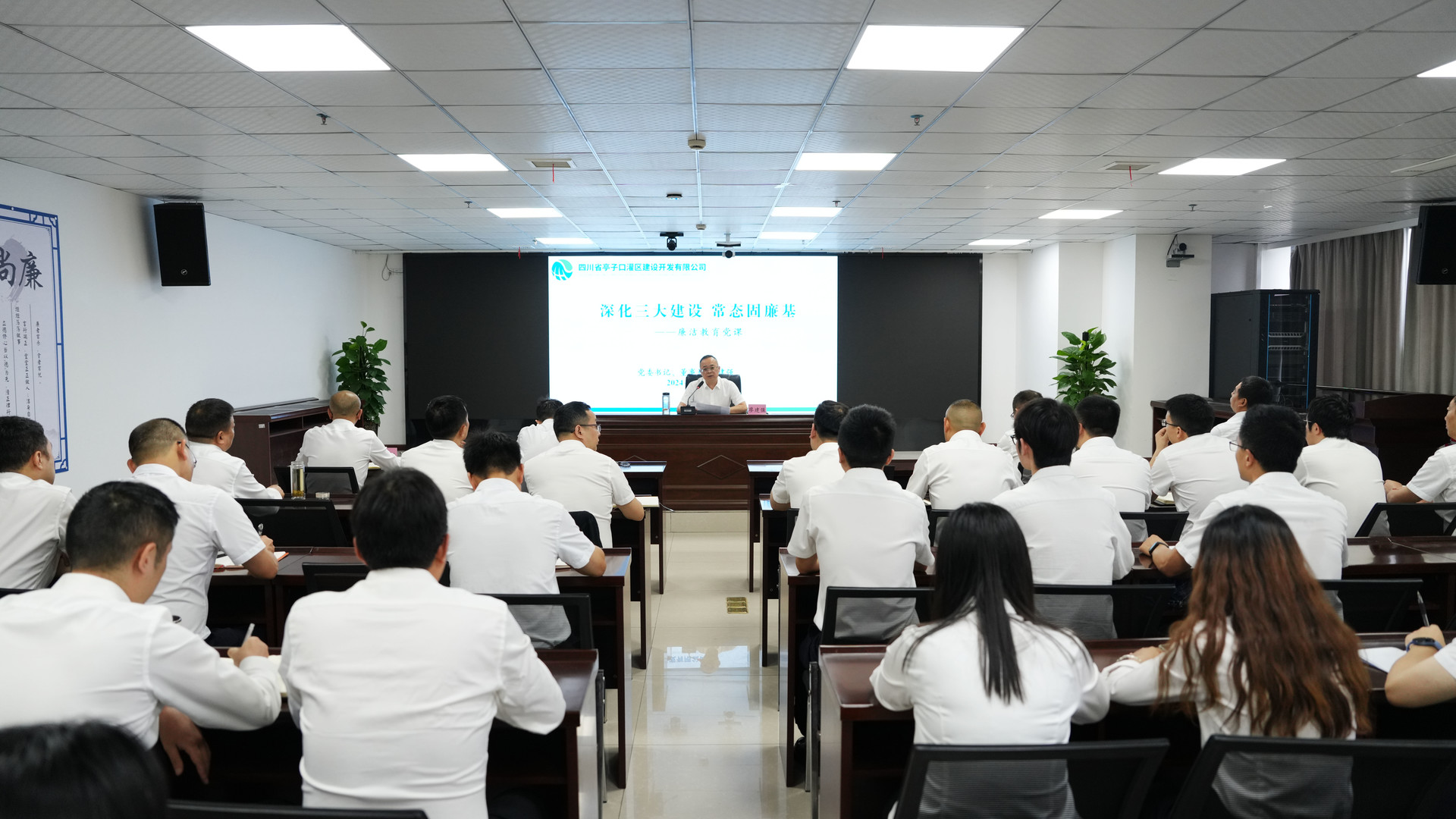 最后,公司黨委書記、董事長廖建強以“深化三大建設、常態(tài)固廉基”為主題為全體干部職工講了一堂生動的廉潔黨課。他強調,一要深化政治建設,做到“三個始終”,始終堅定理想信念,矢志不渝為中國特色社會主義事業(yè)而奮斗,始終堅定政治立場,嚴格遵守“六大紀律”,始終牢記初心使命,早日實現(xiàn)亭子口灌區(qū)工程建成通水,早日惠澤川東北人民;二要深化紀律建設,做好“三個持續(xù)”,以黨紀教育為抓手持續(xù)夯實政治責任,以基層黨支部紀檢委員試點工作為載體持續(xù)強化履責盡責,以廉潔工程共建為平臺持續(xù)推進黨風廉潔建設。三要深化廉潔建設,做到“三個管住”,自覺管住權力、自覺管住欲望、自覺管住小節(jié)。全體干部職工要嚴守紀律規(guī)矩,扣緊廉潔從業(yè)的扣子,堅決做到亭子口工程建設起來,干部不倒下。