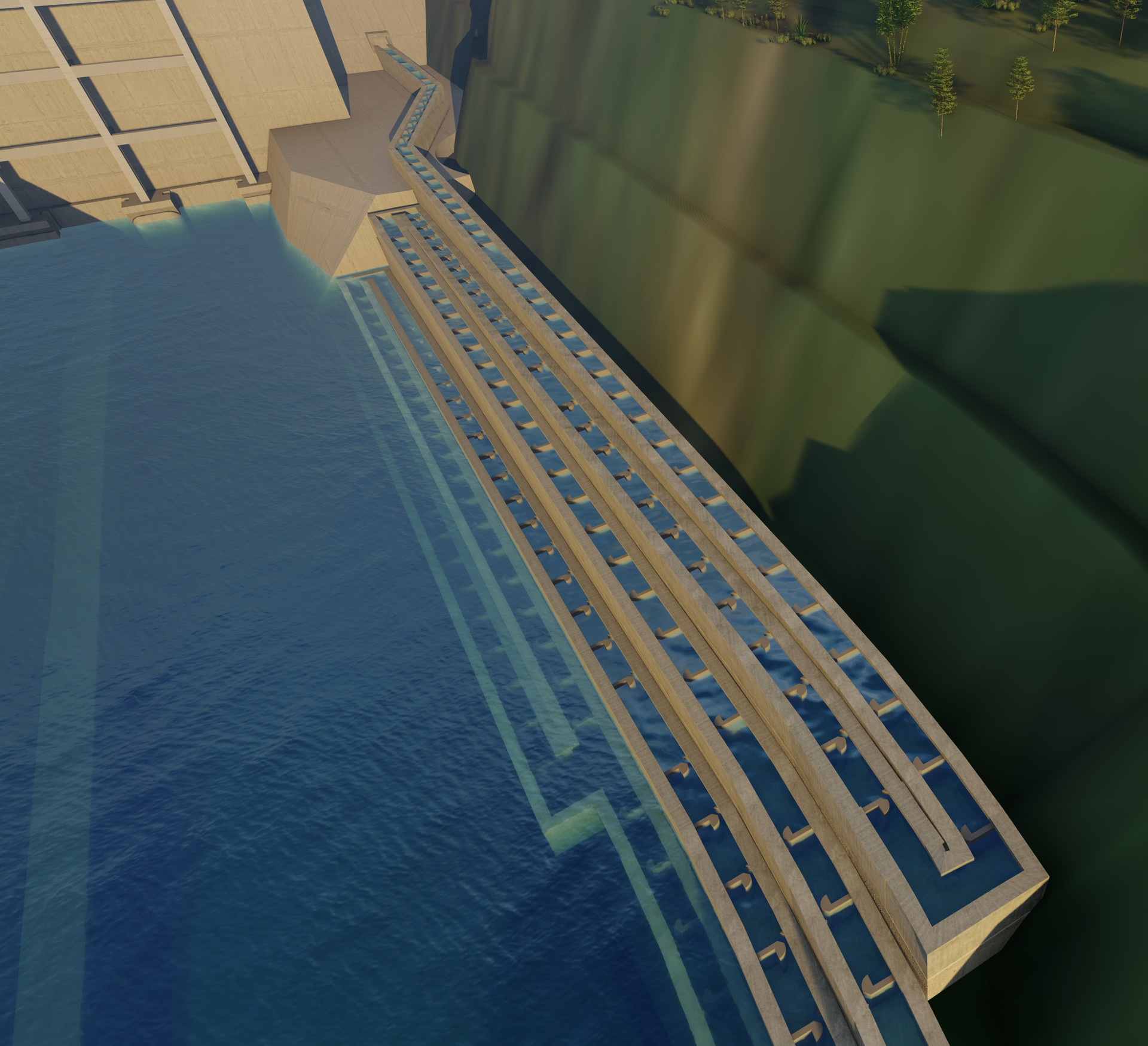 黃石盤水庫魚道工程采用了一種能夠適應(yīng)庫水位變幅的升魚塔結(jié)構(gòu),該結(jié)構(gòu)已獲得國家實用新型專利。升魚塔結(jié)構(gòu)采用升船機的原理,自動控制升魚塔內(nèi)水位的自由升降,實現(xiàn)升魚塔內(nèi)水位與上游水庫任意水位銜接,達到了魚類通過升魚塔自由進入上游水庫的目的。